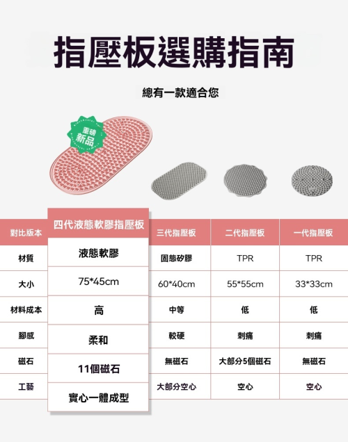 4分鐘前【第四代】實心軟膠指壓板放松按摩墊家用足底軟膠腳墊超慢跑疏通經絡趾壓板 - 新品嘗新「強化心肺 促進循環」 1入組 NT$998